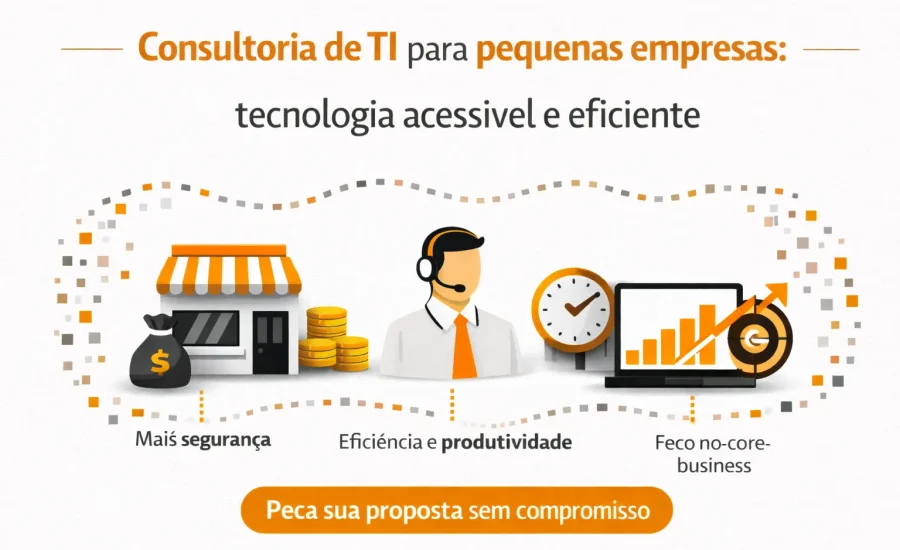 Pequenas empresas dependem cada vez mais da tecnologia para vender, atender clientes, controlar processos e crescer. Mesmo assim, muitas ainda utilizam TI de forma improvisada, sem planejamento e com riscos constantes. A consultoria de TI para pequenas